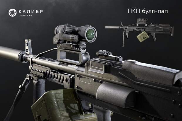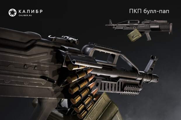 В «Калибре» ПКП булл-пап — основное оружие Поддержки из спецподразделения «ССО 2013». Конструкция пулемёта с компоновкой булл-пап отличается от классических моделей расположением вертикальной рукоятки для удержания оружия и спускового крючка: ударный механизм и магазин размещаются после них. С помощью схемы булл-пап сохраняется длина ствола, но существенно уменьшаются габариты оружия.